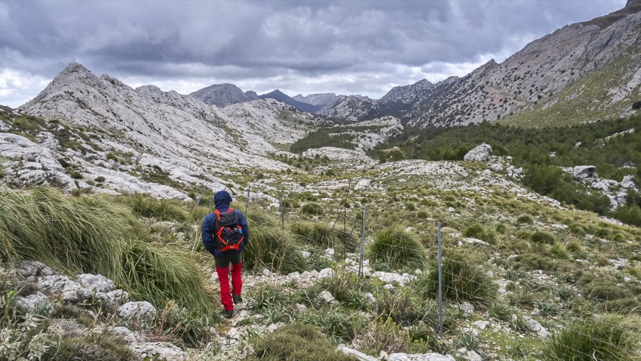 Desde este momento, ya tendremos una visual del Puig de Ses Vinyes (frente a nosotros) y a la izquierda el Puig Major, sa Gulla d’es Frare y Coll de s´Escudella.