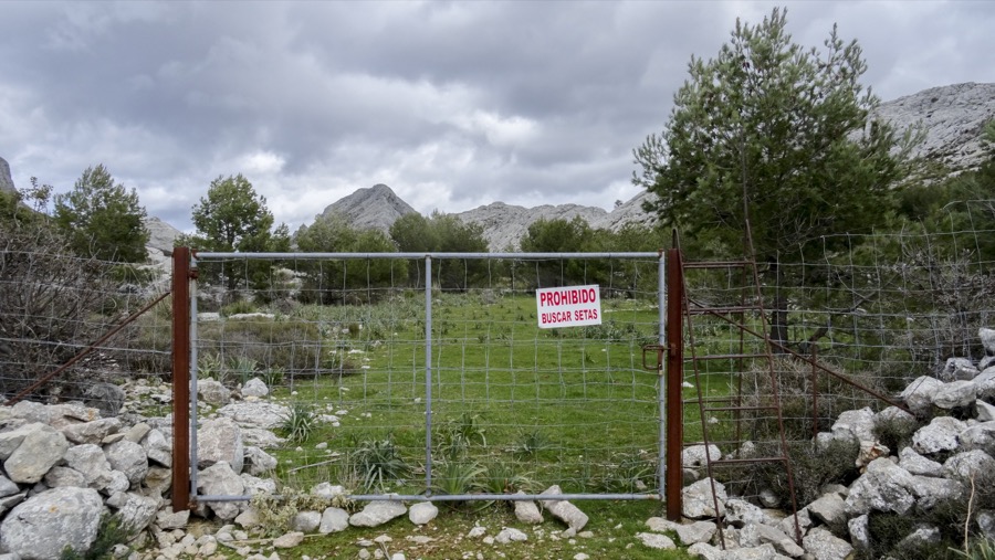 A partir de aquí nos adentramos en un frondoso bosque de pinos y tras atravesarlo encontraremos una pista por donde podremos proseguir. En esta pista, a escasos 5 minutos, encontraremos una barrera metálica a nuestra izquierda que deberemos tomar, si siguiéramos de frente encontraríamos otra pero nos daría acceso a la carretera militar a la cual no se está permitido el paso.